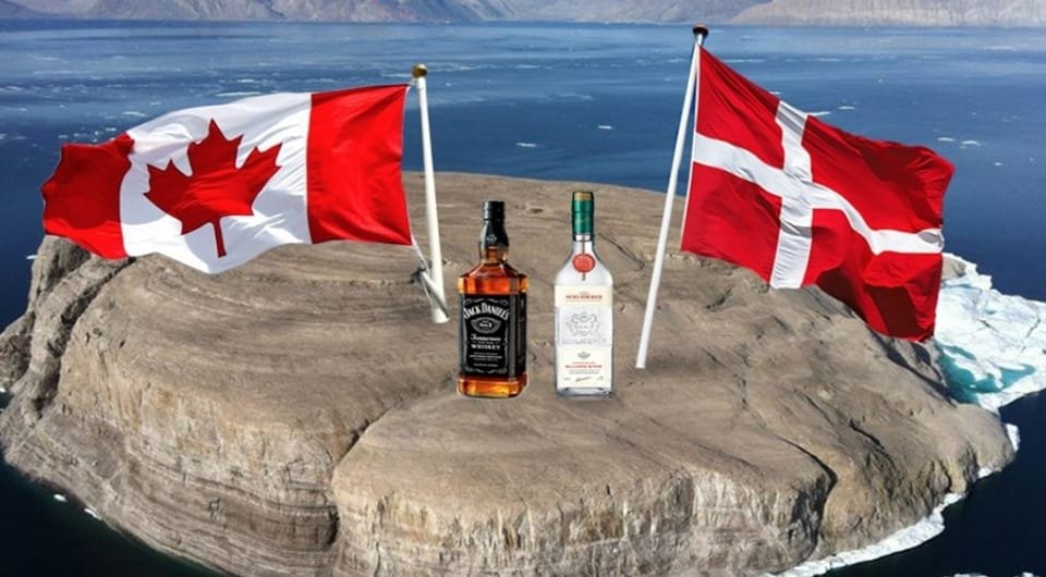 Канада и Дания завершили "вoйнy виски". Страны 50 лет спорили о необитаемом острове Ханс: каждая новая экспедиция поднимала там флаг то Канады, то Дании и оставляла следующим бутылку алкоголя. Теперь остров поделили пополам, при подписании соглашения стороны обменялись спиртным► Показать